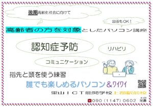 「相生・上郡広域シルバー人材センター」を訪問しコラボレーションの第一歩を踏み出しました!目的は会員向けにされている 「フレンドリーショップ」 で、「里山ICT能開学校」 の「高齢者向けパソコン講座」と「暮らしの中のカウンセリング講座」の割引特典を提供です。現在、受けられておられるお仕事には「パソコン・スマホサポート」や「お話し相手」などが含まれていないとのことですが、後日、入会説明会に参加予定です。高齢化社会を迎える今こそ、持っているスキルをシェアしあい、支え合う 「Win-Winの関係」 を築くチャンス!新しい流れが広がれば、社会全体がもっと活気づく予感がします。