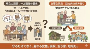 住民ワークショップに参加してきました。他府県の廃校活用の先進事例後、当地での活用案へ。そこで聞こえてきたのは「ハードルが高い」という声でした。空き家の話でも「自治会との付き合いが大変」「地域のルールが…」確かに大切なことです。でも、移住者を増やしたいと言いながら、「移住者が地域に合わせる」ことだけを求めていないか?本当に必要なのは、地域が“少し”移住者に歩み寄る視点ではないでしょうか。合わせることを一方通行にした先に待つのは、「結局、誰もいなくなった」という未来かもしれない。廃校も、空き家も、地域も。守るだけでなく、変わる覚悟が問われている気がします。
